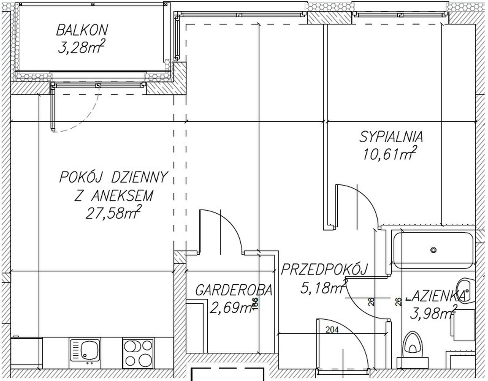 odrębna garderoba, łazienka i balkon 3,3m2